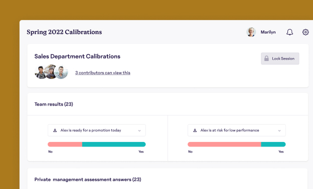 Use 15Five to bring managers into calibration discussions to transparently and equitably assess how team members were rated. Adjust scores in real-time using the same standard of performance across every team.